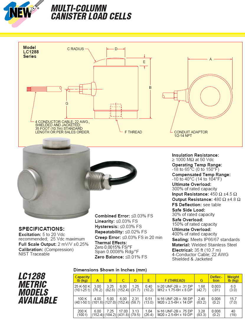 | 產(chǎn)品名稱:Omega LC1288 柱式傳感器(load cells) |