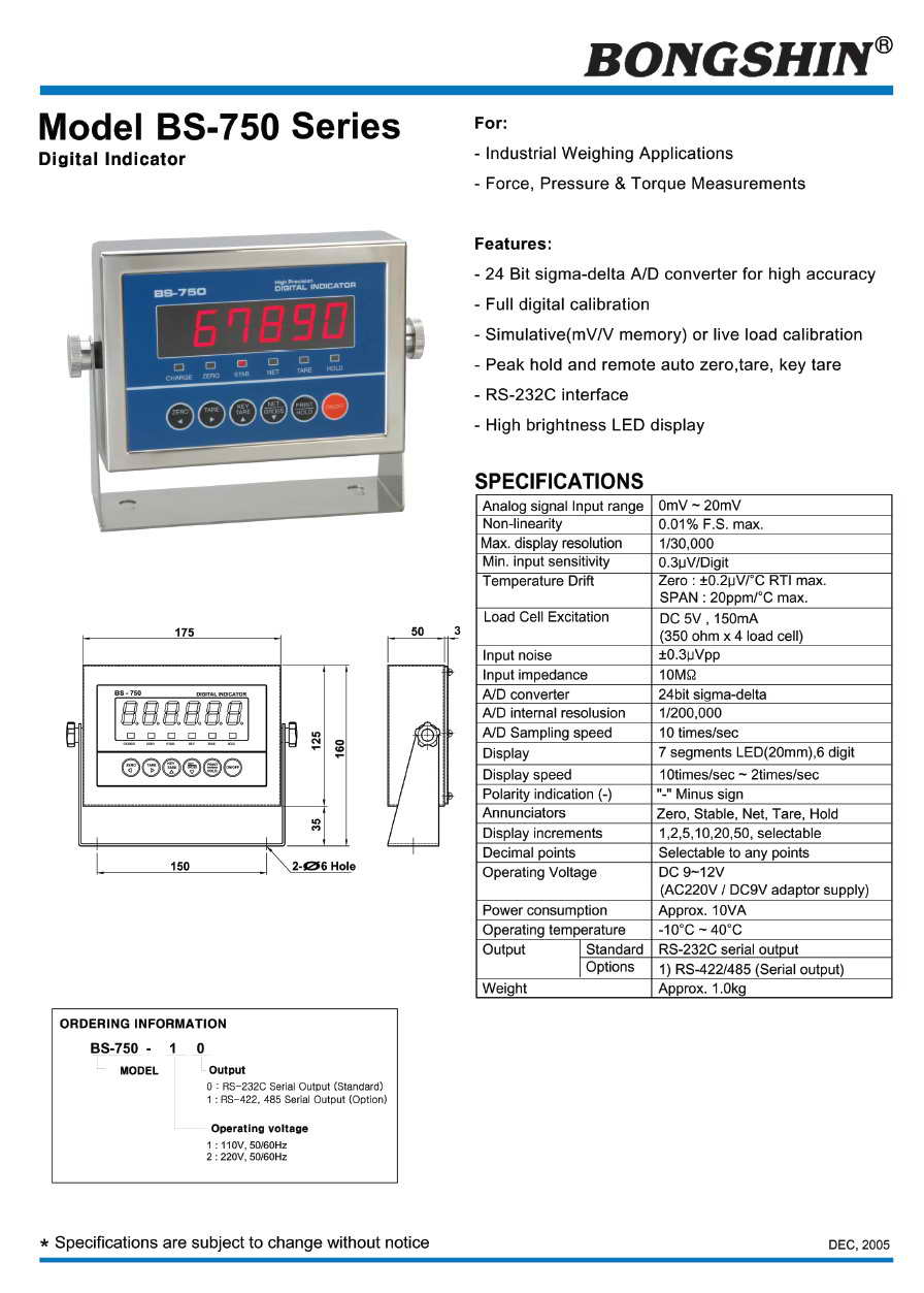 | 產(chǎn)品名稱:BS-750 顯示儀表(digital indicator) |