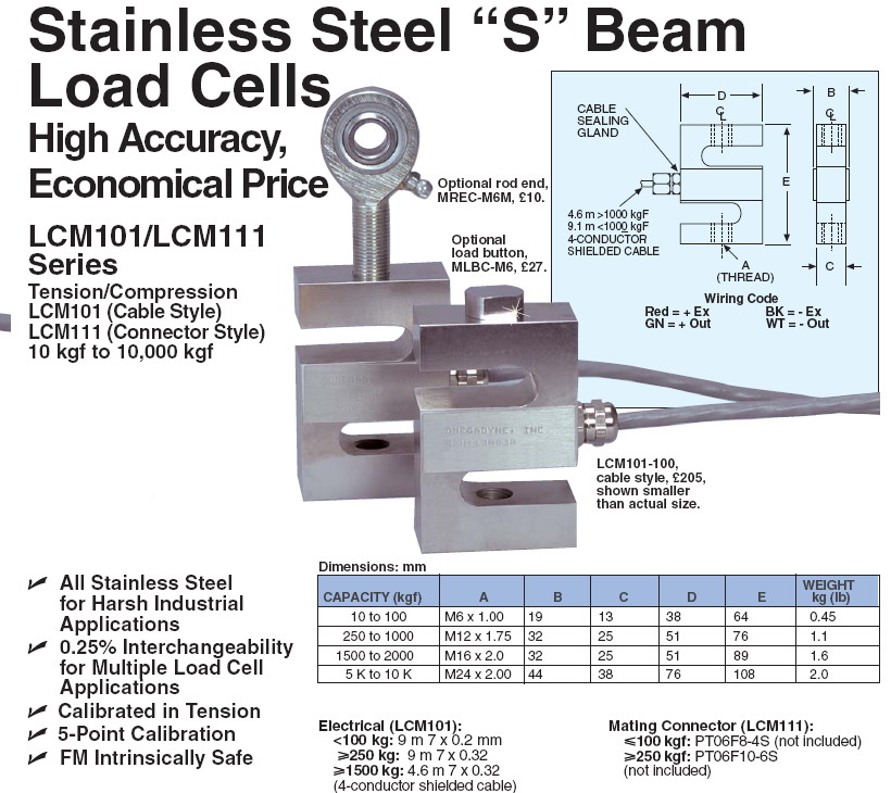 | 產(chǎn)品名稱:Omega LCM101 S型稱重傳感器(load cells) |