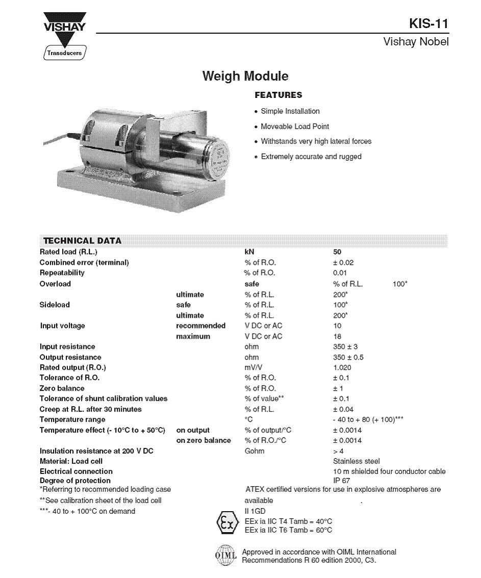 | 產(chǎn)品名稱:KIS-11 稱重模塊(weigh module) |