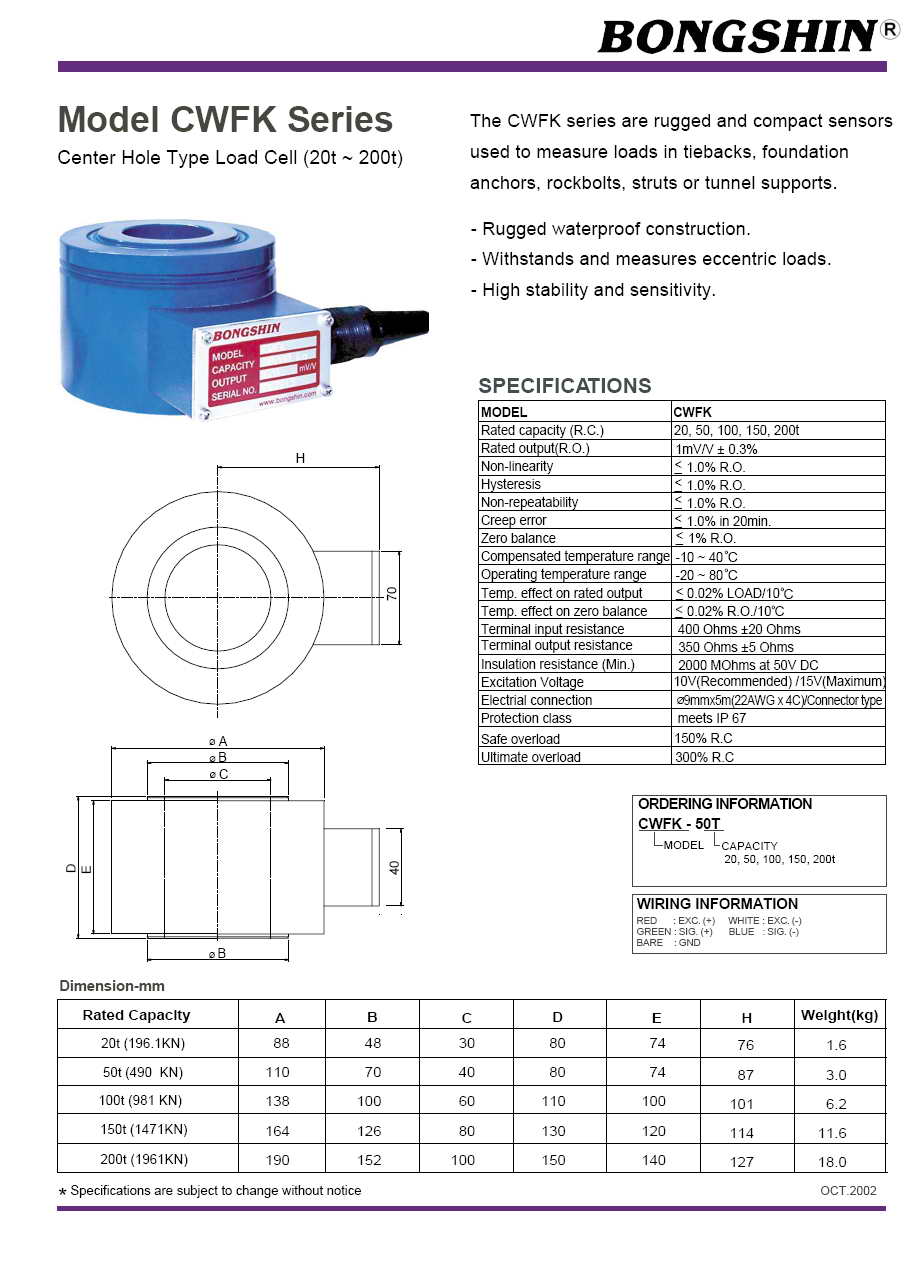CWFK 壓式稱(chēng)重傳感器(load cell)