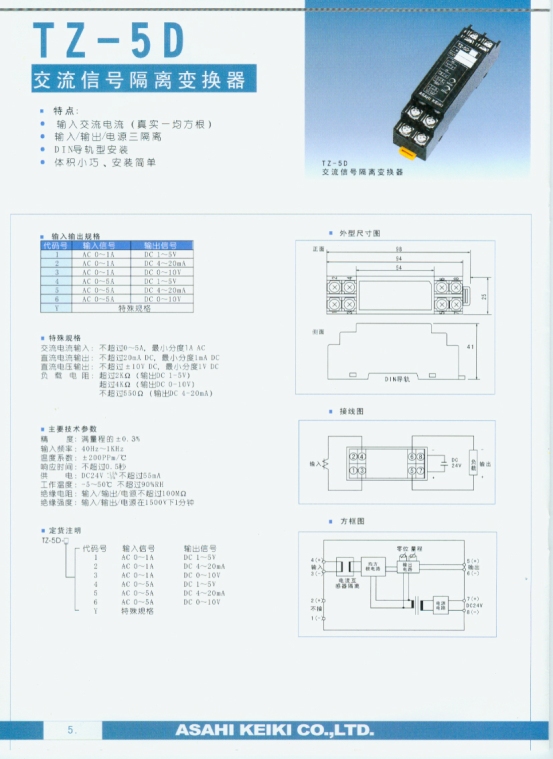 TZ-5D 交流信號隔離變換器(Transmitter)