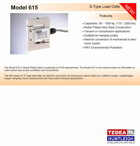 美國Tedea稱重傳感器,稱重傳感器615-500KG,傳感器615-500KG,615-500KG,咨詢熱線:0755-26734156